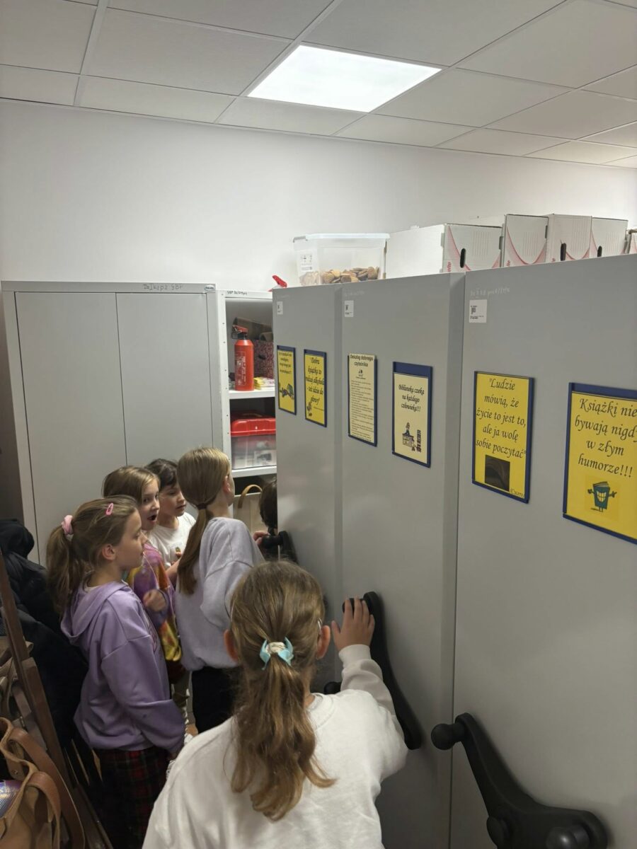 Na początek młodzi czytelnicy mieli niepowtarzalną okazję zajrzeć w miejsca, które na co dzień są dla odwiedzających niedostępne. Tajemnicze zakamarki biblioteki wzbudziły wiele emocji i pytań, a atmosfera sprzyjała detektywistycznym przygodom.