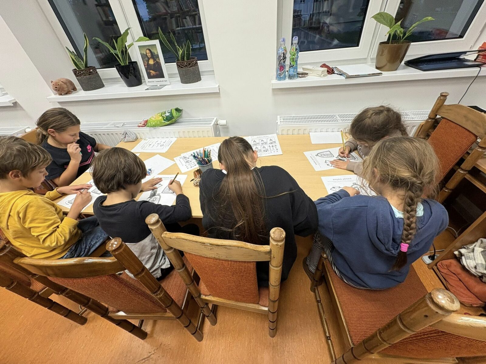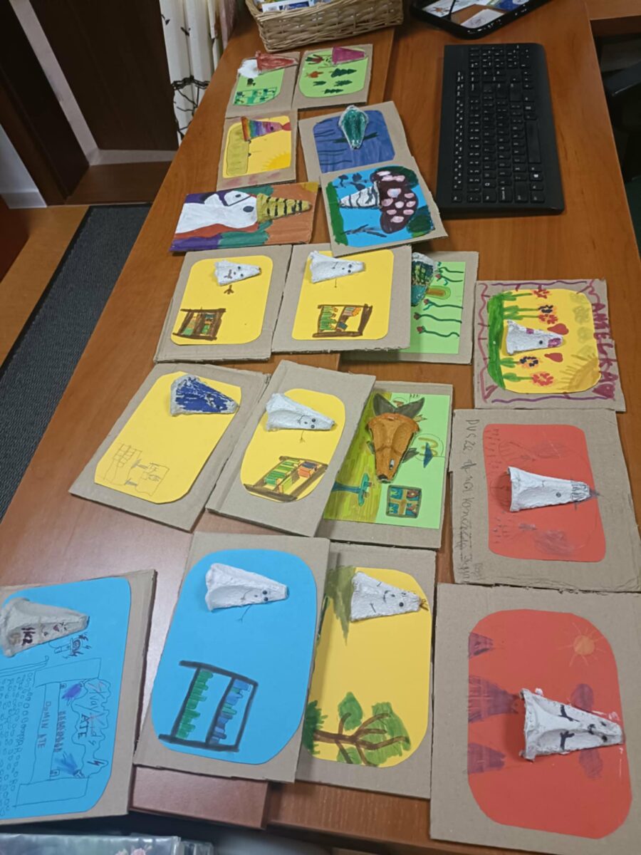 Po intelektualnych wyzwaniach przyszedł czas na odrobinę kreatywności. Z kartonu, kolorowych papierów i części wytłaczanek powstały barwne prace plastyczne – duchy, zwierzęta i inne postacie z detektywistycznym zacięciem.