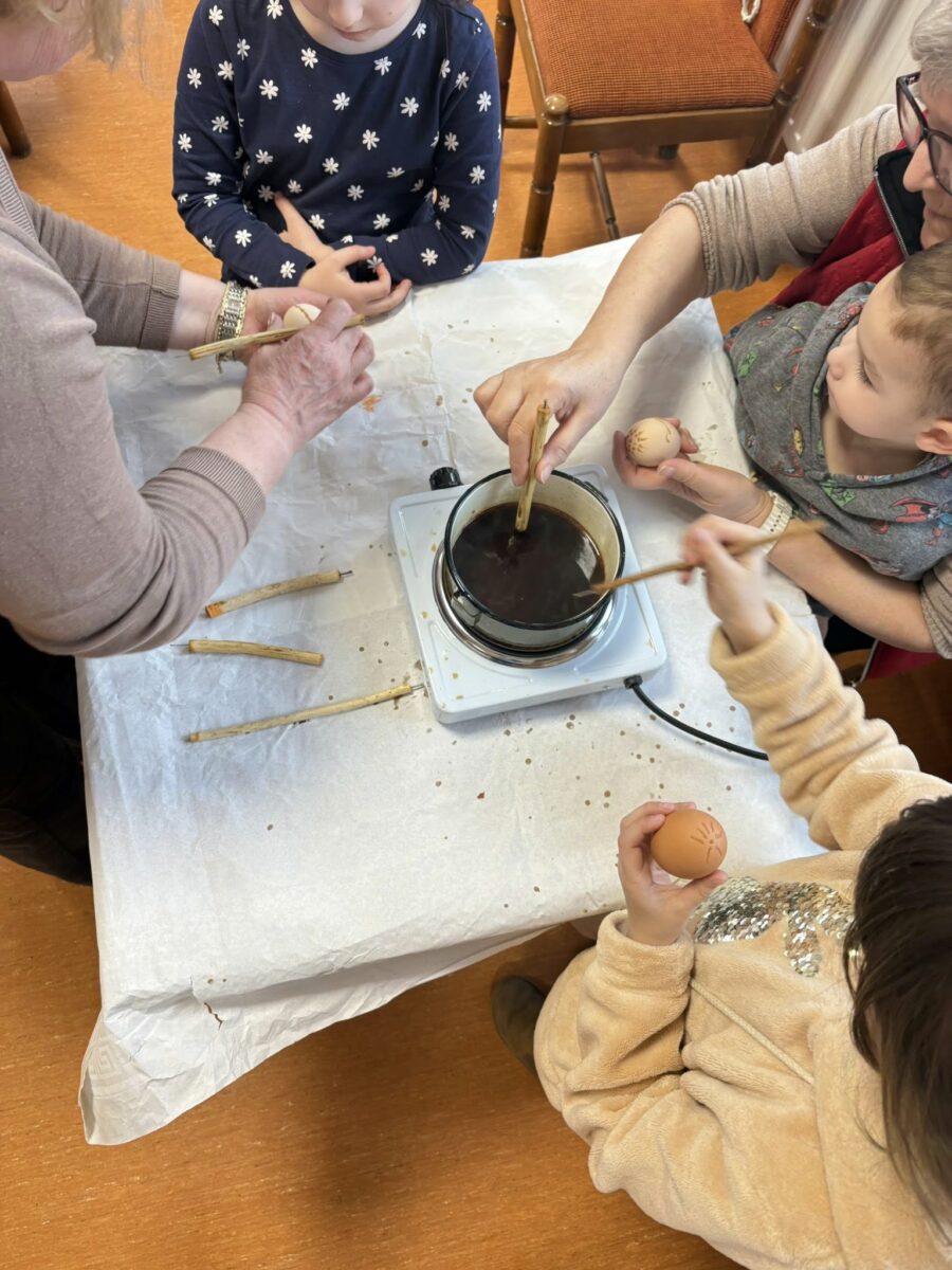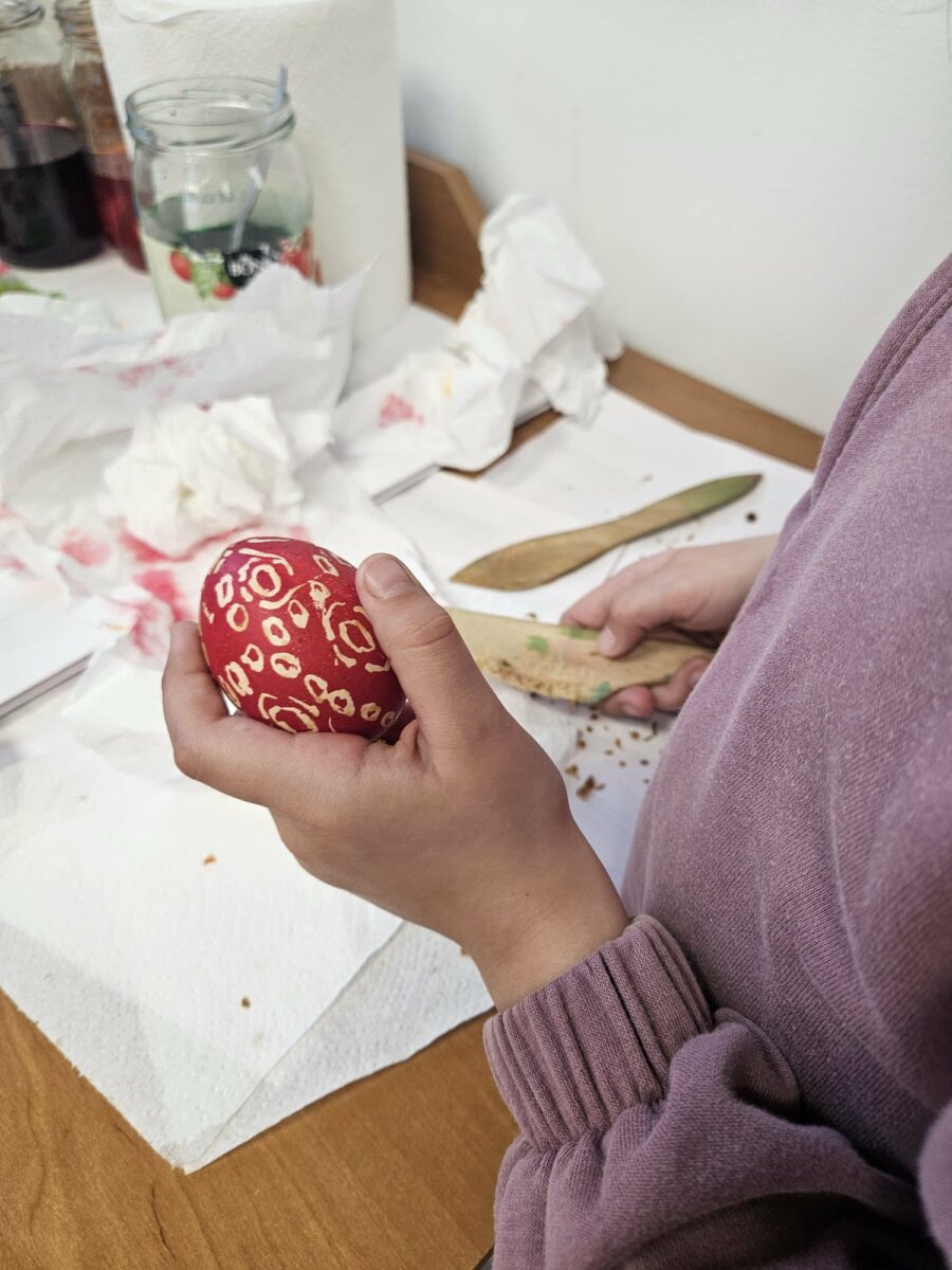 Podczas warsztatów wielkanocnych uczestnicy zdobili pisanki batikowe. To tradycyjna metoda zdobienia jaj, głęboko zakorzeniona w kulturze ludowej. W trakcie zajęć poznawaliśmy historię tej techniki oraz znaczenie wzorów. Warsztaty były także okazją do przypomnienia postaci Aleksandra Polańska-Hryńczuk. To wybitna artystka pochodząca z Łabowej. Jej pisanki do dziś zachwycają precyzją i bogactwem zdobień.