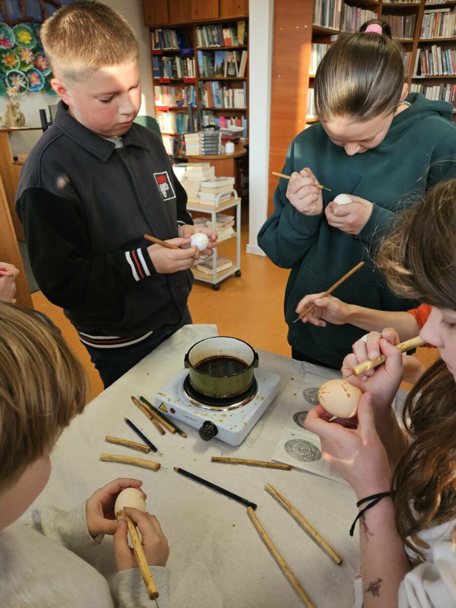 Warsztaty wielkanocne w bibliotece – pisanki batikowe i tradycja